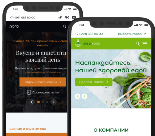 Заказать звонокОколо 50% аудитотрии ресторанов и кафе приходит на сайт с мобильных устройств, поэтому все наши сайты разработаны с адаптивным дизайном под любые устройства.